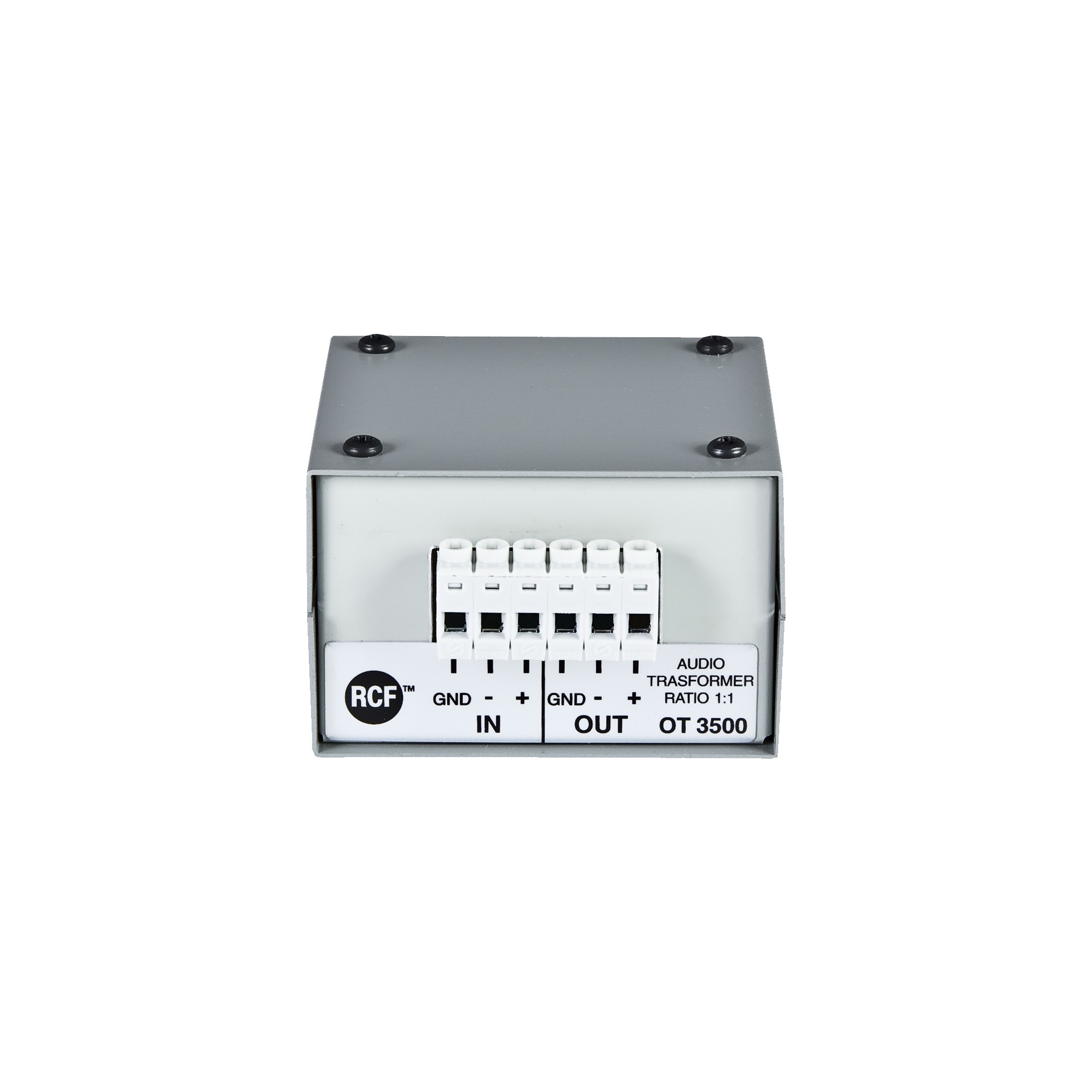 Trasformatore di isolamento in mumetal, morsetti estraibili a vite. Accetta segnali a livello linea.
