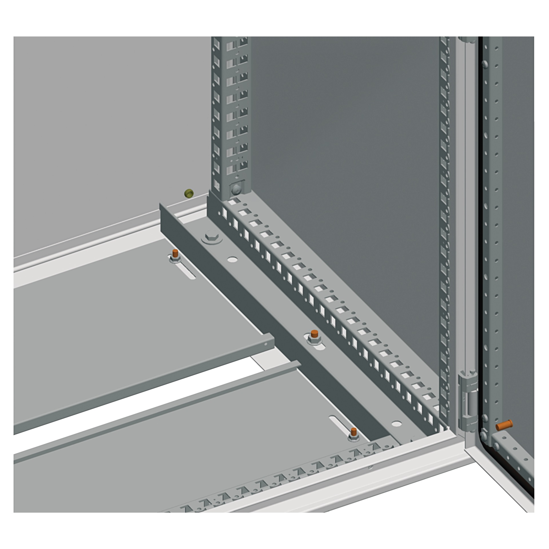 Piastra pressacavi multiuso con 1 ingresso per armadi Spacial SM Il prodotto è realizzato in acciaio zincato La piastra ha uno spessore di 1,5 mm La larghezza nominale è 800 mm La profondità nominale è 500 mm Il set contiene elementi di fissaggio, 2 piastre e guarnizione adesiva La piastra pressacavi deve essere montata sulla parte inferiore dell'armadio
