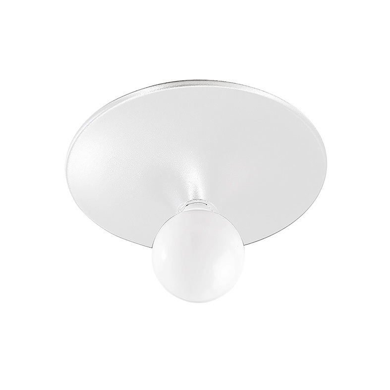 Lampada da soffitto e a parete in alluminio. Attacco E27 che consente di personalizzare ulteriormente il prodotto montando una lampadina a vista a LED a scelta. Disponibile in tre finiture (bianco, cr omo, grigio) e tre misure.