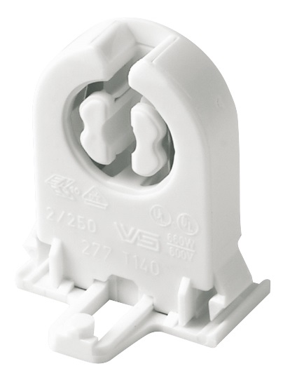 Portalampade rigido a colonna 2 A 500 V per lampade fluorescenti tubolari G13, bottone girevole, con nottolino, per conduttori rigidi e flessibili da 0,5 mm2 a 1 mm2, contatti ottone, fissaggio a scatto, morsetti a molla, massima temperatura d'impiego continuo 140 °C (Tm 110 °C), bianco