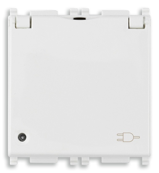 Presa SICURY 2P+T 16 A 250 V~ universale standard italiano P40 con coperchio, illuminabile, materiale antibatterico, bianco - 2 moduli