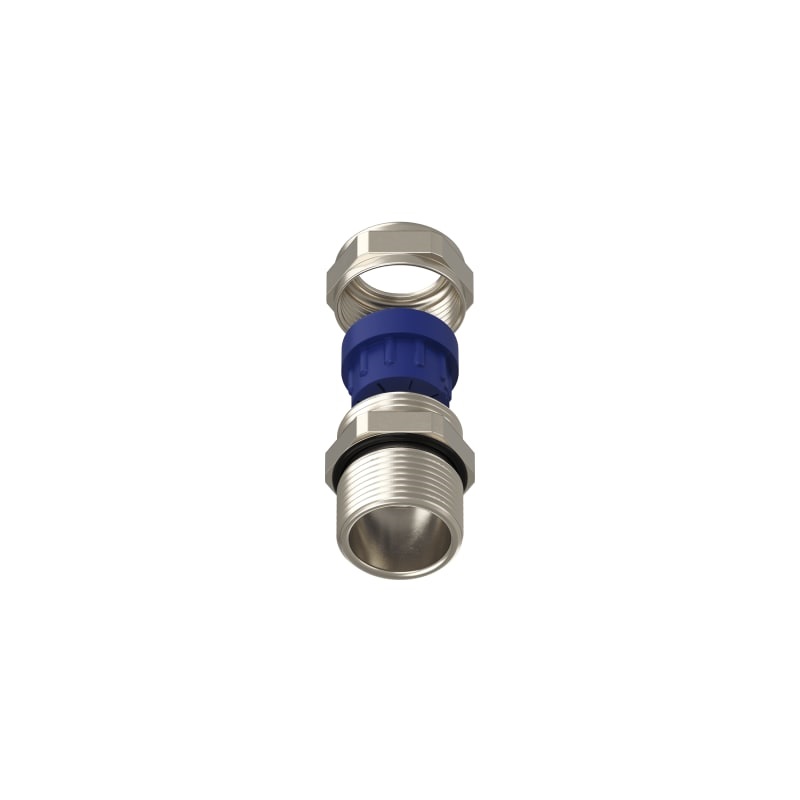 Pressacavo in ottone nichelato con gommino di serraggio in TPE anello O-ring sulla filettatura. La lunghezza della filettatura permette l'impiego di questo pressacavo, con l'applicazione di un controdado, su pareti con spessore sino a 10 mm IP68.