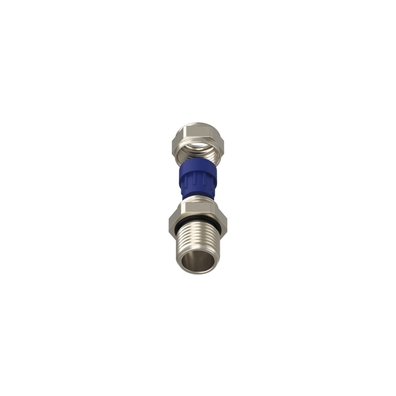 Pressacavo in ottone nichelato con gommino di serraggio in TPE anello O-ring sulla filettatura. La lunghezza della filettatura permette l'impiego di questo pressacavo, con l'applicazione di un controdado, su pareti con spessore sino a 10 mm IP68.