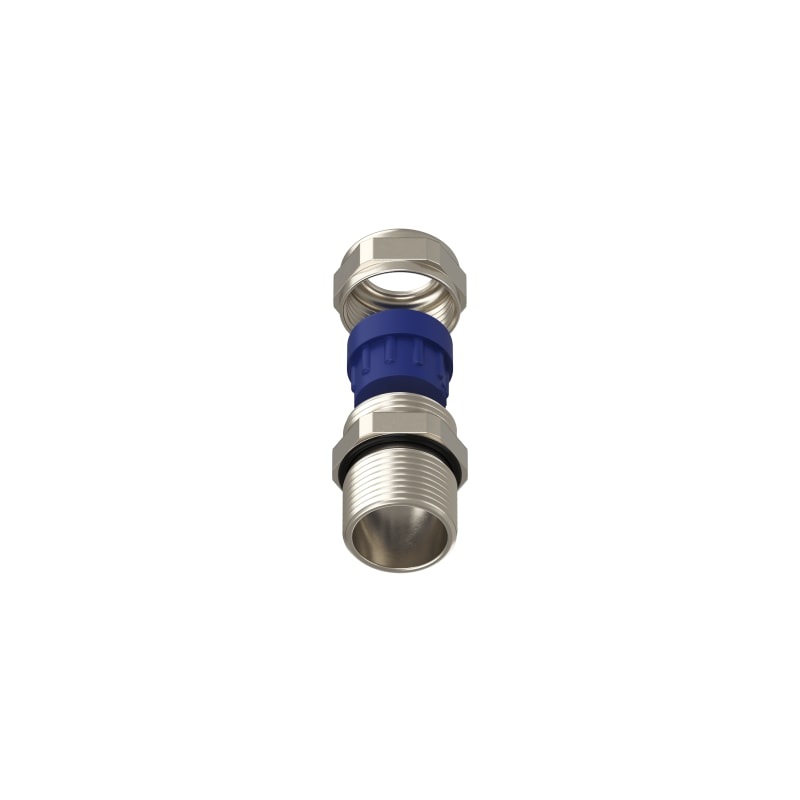 Pressacavo in ottone nichelato con gommino di serraggio in TPE anello O-ring sulla filettatura. La lunghezza della filettatura permette l'impiego di questo pressacavo, con l'applicazione di un controdado, su pareti con spessore sino a 10 mm IP68.