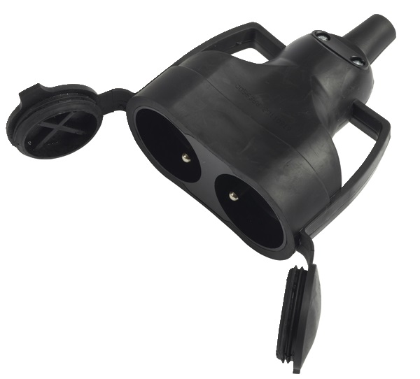 Prolunga in gomma 2 prese 16 A, 2P+T a valvole da montare su cavo HO7RN-F da 3G1,5 mm² a 3G2,5 mm² ideale per dispositivi di Classe I.