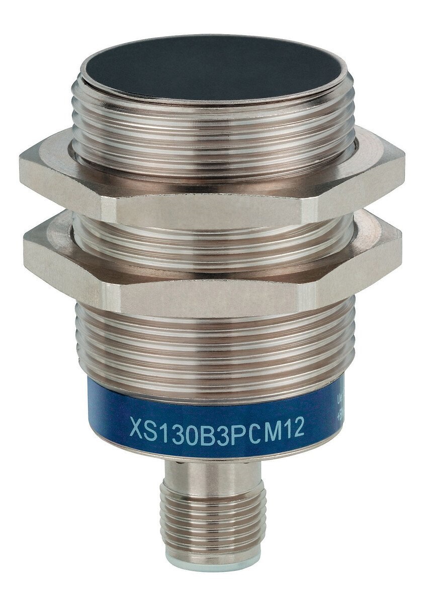La gamma XS è un'offerta di sensori di prossimità induttivi per il rilevamento, senza contatto fisico, di oggetti metallici. I vantaggi del rilevamento induttivo sono numerosi, nessun contatto fisico con l'oggetto da rilevare. Evitando inoltre l'usura e consentendo il rilevamento di oggetti fragili o appena dipinti. Elevate velocità di funzionamento. Risposta rapida. Eccellente resistenza agli ambienti industriali (prodotti robusti, completamente incapsulati in resina). Questo prodotto è un sensore cilindrico, montato a immersione, con una portata incrementata. Diametro 30mm, filettato M30 x 1,5. È dotato di un involucro cilindrico in ottone nichelato e di un connettore M12. Ha una distanza di rilevamento di 15mm. Quattro fili, alimentazione DC, da 12V a 24V con protezione da polarità, funzione NO + NC, uscita a stato solido PNP.