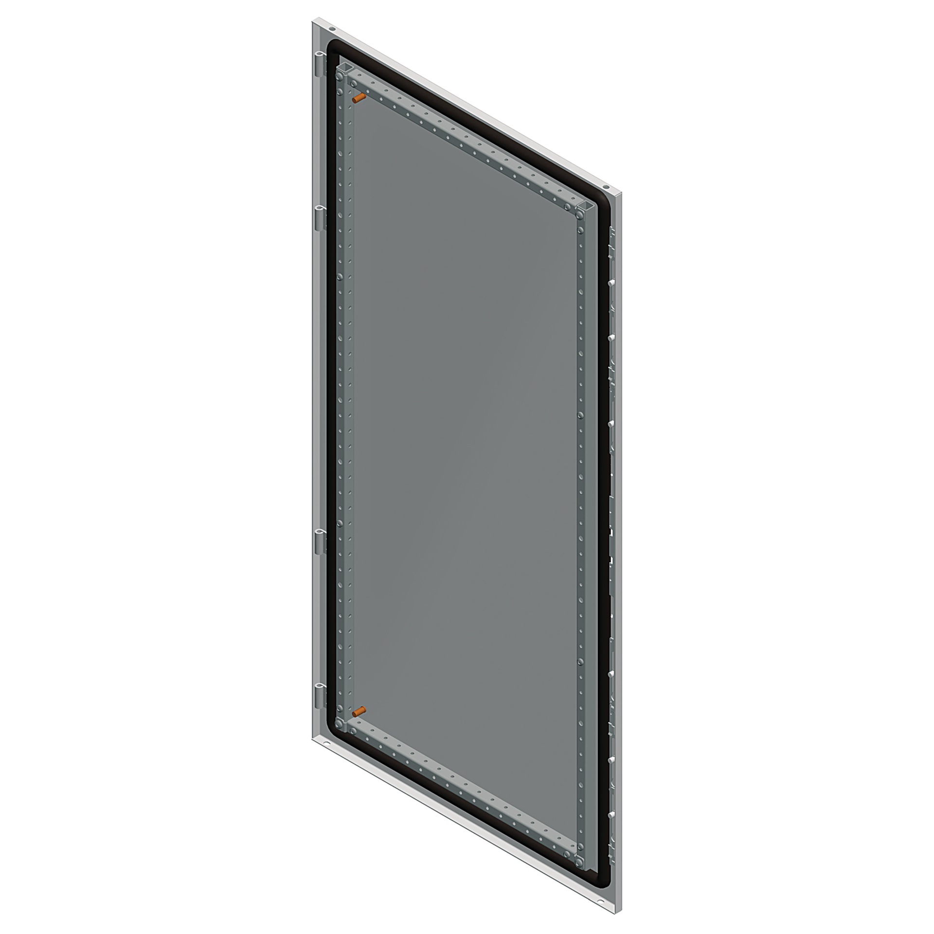 Spacial SF/SM - Porta piena per armadio. 2000 x 1000 mm. Applicazione multifunzione. Montaggio frontale o laterale. Serratura doppia barra 5 mm. L'angolo di apertura è reversibile 120°. Corpo in lamiera di acciaio, superficie in polvere epossidica a base poliestere. Grigio RAL 7035.