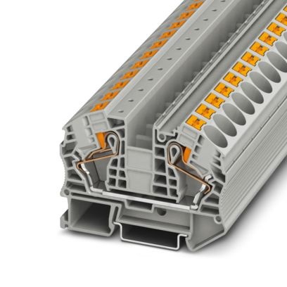 Morsetto passante, tensione nominale: 1000 V, corrente nominale: 76 A, numero di connessioni: 2, tipo di connessione: Connessione Push-in, Sezione di dimensionamento: 16 mm², sezione: 0,5 mm² - 25 mm², tipo di montaggio: NS 35/7,5, NS 35/15, colore: grigio