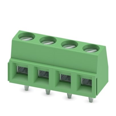 Morsetto circuito stampato, corrente nominale: 17,5 A, tensione di dimensionamento (III/2): 400 V, sezione nominale: 1,5 mm², numero dei potenziali: 4, numero di file: 1, numero di poli per fila: 4, serie di prodotti: MKDSN 1,5, passo: 5,08 mm, tipo di connessione: Connessione a vite con gabbia, forma di attacco delle viti: L Fessura longitudinale, montaggio: Saldatura a onde, direzione di collegamento conduttore/scheda: 0 °, colore: verde, Layout Pin: Pinning lineare, Lunghezza pin [P]: 3,5 mm, numero di pin di saldatura per potenziale: 1, tipo di confezione: confezionato nel cartone