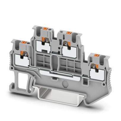Morsetto a due piani, tensione nominale: 500 V, corrente nominale: 16 A, tipo di connessione: Connessione Push-in, 1. e 2. piano, Sezione di dimensionamento: 1,5 mm², sezione: 0,14 mm² - 1,5 mm², tipo di montaggio: NS 35/7,5, NS 35/15, colore: grigio