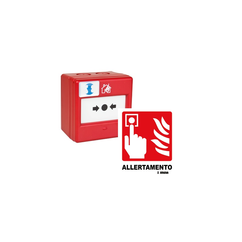 PULSANTI MANUALI RIPRISTINABILI - CONFORMI EN54-11 / Materiale termoplastico colore rosso (RAL 3000) / Pittogramma europeo universale / Protezione: IP24 oppure IP66 / Contatto interno: 1 x C-NC-NA Nel SISTEMA PCS: modulo di comunicazione indirizzato