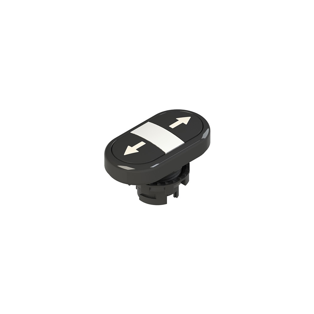 Pulsante doppio inferiore rasato con marcatura, Grado di protezione: IP67 secondo EN 60529 e IP69K secondo ISO 20653, Forma: Superiore rasato, inferiore rasato, Elemento intermedio: Tappo illuminabile, Ghiera: Nero.