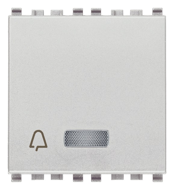 Pulsante SET/RESET per chiamata di emergenza, individuazione al buio, 2 uscite a relè NO 5 A 250 V~ per segnalazione ottica ed acustica, alimentazione 12 V~ 50-60 Hz o 12-24 Vd.c. (SELV), Next - 2 moduli. SET con pulsante incorporato o da più punti con pulsanti NC collegati in serie. RESET da più punti con pulsanti NC collegati in serie