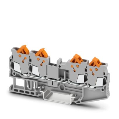 Morsetto passante, tensione nominale: 800 V, corrente nominale: 17,5 A, numero di connessioni: 4, tipo di connessione: Connessione rapida, 1. piano, Sezione di dimensionamento: 1,5 mm², sezione: 0,25 mm² - 1,5 mm², tipo di montaggio: NS 35/7,5, NS 35/7,5, colore: grigio