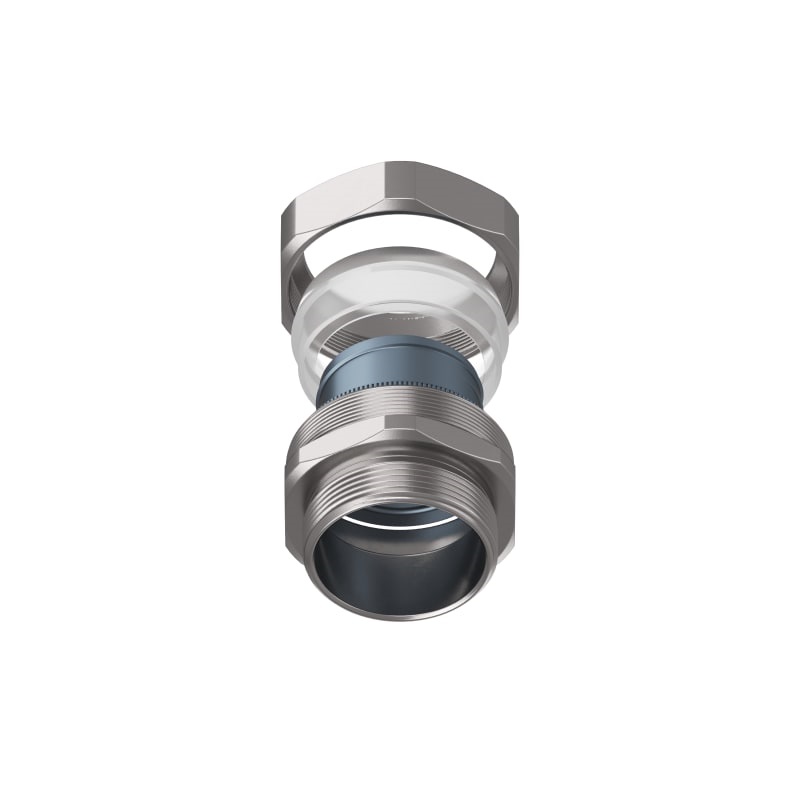 Il raccordo consente di effettuare tutti i collegamenti con le guaine metalliche tipo L - P - DAR - SVT - T - TP - LPU - DAPU e SVPEVAT in modo pratico, economico e sicuro. Il collegamento raccordo-guaina viene effettuato mediante una virola ed un anello in nylon. La particolare costruzione della virola consente l'avvitamento all'interno della guaina metallica, garantendo un abbinamento dotato di un'ottima resistenza alla trazione ed alla vibrazione, assicurando nel contempo una perfetta continuità elettrica. L'anello di nylon invece, bloccando esternamente la guaina flessibile, completa l'accoppiamento raccordo-guaina garantendo un grado di protezione IP67.
