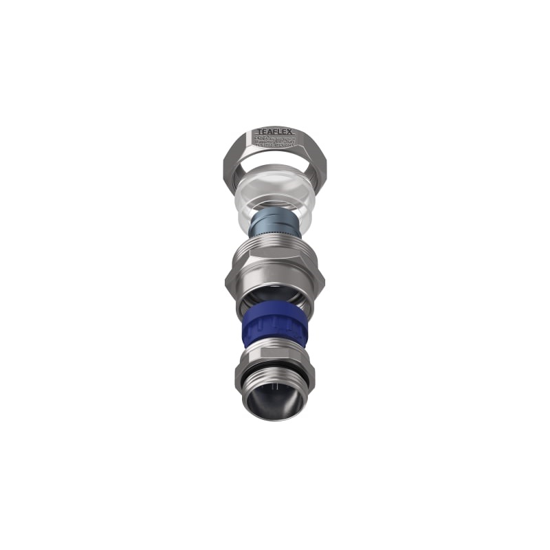 Oltre all'esigenza di un solido ancoraggio del raccordo sulla guaina, esiste anche la necessità di rendere stagna ed inamovibile (in caso di strappo o trazione) l'accoppiamento raccordo-cavo elettrico proveniente da canaline, cassette, motori, quadri elettrici, ecc. Il raccordo risolve brillantemente ambedue le necessità. L' ancoraggio del raccordo sulla guaina è garantito con la medesima efficacia che contraddistingue l'ancoraggio di tutti i raccordi CM, inoltre il particolare gommino pressacavo assicura sia la tenuta (da infiltrazioni di polvere e liquidi) che la protezione meccanica da eventuali strappi o trazioni del cavo stesso IP67.