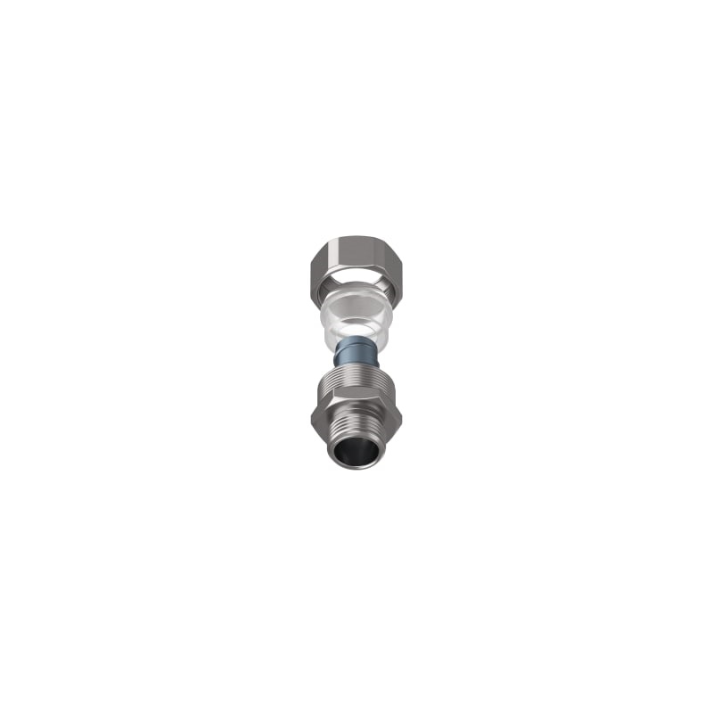 Il raccordo filetto maschio in ottone nichelato, permette il collegamento diretto tra le guaine NZ-DAN-SV-SVPEVA. Il collegamento raccordo-guaine viene effettuato mediante una virola ed un anello di nylon. La particolare costruzione della virola consente l'avvitamento all'interno della guaina metallica, permettendo di ottenere un abbinamento dotato di una ottima resistenza alla trazione e alla vibrazione. L'anello di nylon invece, bloccando esternamente la guaina flessibile, completa l'accoppiamento raccordo-guaina IP40.