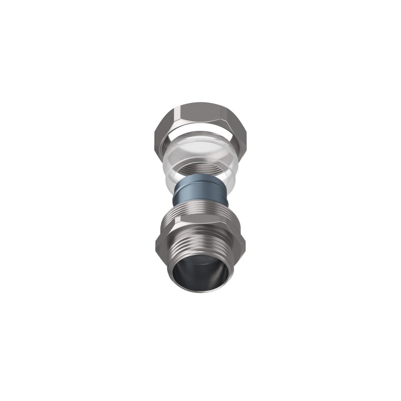 Il raccordo filetto maschio in ottone nichelato, permette il collegamento diretto tra le guaine NZ-DAN-SV-SVPEVA. Il collegamento raccordo-guaine viene effettuato mediante una virola ed un anello di nylon. La particolare costruzione della virola consente l'avvitamento all'interno della guaina metallica, permettendo di ottenere un abbinamento dotato di una ottima resistenza alla trazione e alla vibrazione. L'anello di nylon invece, bloccando esternamente la guaina flessibile, completa l'accoppiamento raccordo-guaina IP40.