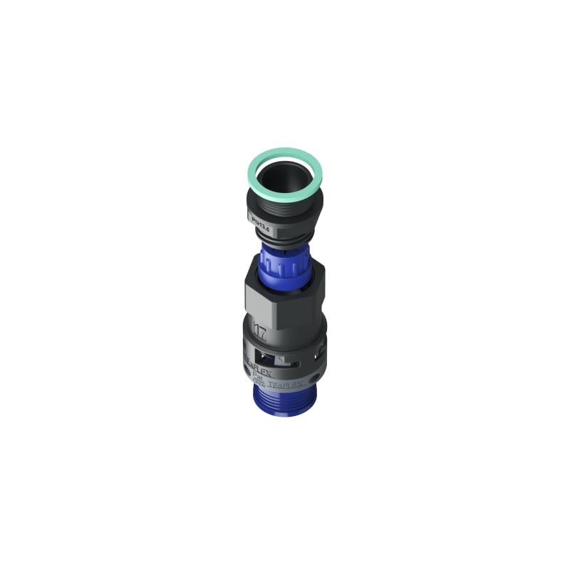 Il raccordo filetto in plastica e la combinazione del gommino pressacavo offre un'eccezionale tenuta alla trazione, alla torsione e garantisce una protezione da infiltrazioni di polveri e liquidi (IP68) sulle guaine corrugate e sul cavo stesso. Soddisfa i requisiti standard nelle installazioni elettriche e nelle applicazioni tecniche industriali IP68/IP69K.