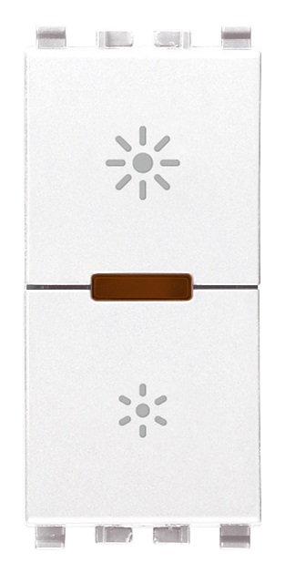 Dimmer universale 230 V~ 50 Hz a taglio di fase, per lampade ad incandescenza 40-400 W, trasformatori elettronici 40-300 VA, lampade CFL 10-200 W, lampade LED 3-200 W, per alimentatori elettronici LED a taglio di fase, comando ON/OFF e regolazione con pulsanti incorporati o da più punti con pulsanti NO, funzione MASTER per 20137, regolazione intensità luminosa minima, individuazione al buio, bianco. Apparecchio non installabile nei contenitori Isoset