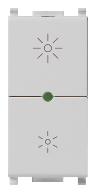 Dimmer universale 230 V~ 50 Hz a taglio di fase, per lampade ad incandescenza 40-400 W, trasformatori elettronici 40-300 VA, lampade CFL 10-200 W, lampade LED 3-200 W, per alimentatori elettronici LED a taglio di fase, comando ON/OFF e regolazione con pulsanti incorporati o da più punti con pulsanti NO, funzione MASTER per 14137, regolazione intensità luminosa minima, individuazione al buio, Silver. Apparecchio non installabile nei contenitori Isoset