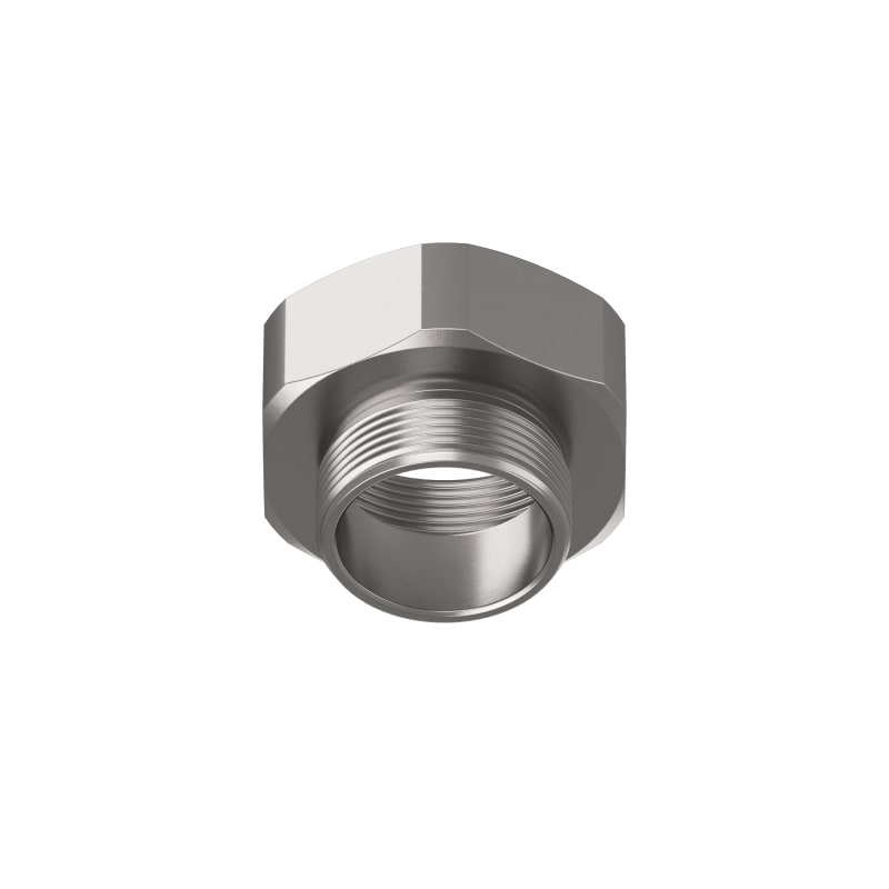 Riduzione a bicchiere filetto maschio ISO metrico - filetto femmina ISO metrico in ottone nichelato.