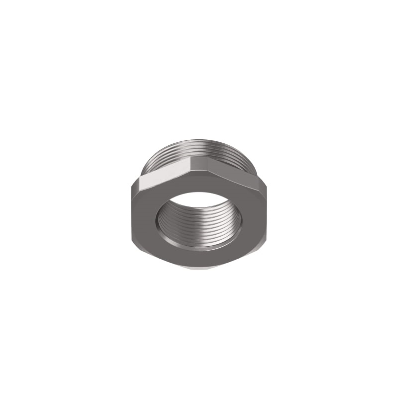 Riduzione esagonale filetto maschio ISO Metrico - filetto femmina PG in ottone nichelato.