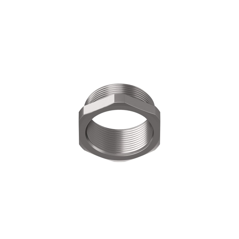 Riduzione esagonale filetto maschio ISO Metrico - filetto femmina PG in ottone nichelato.