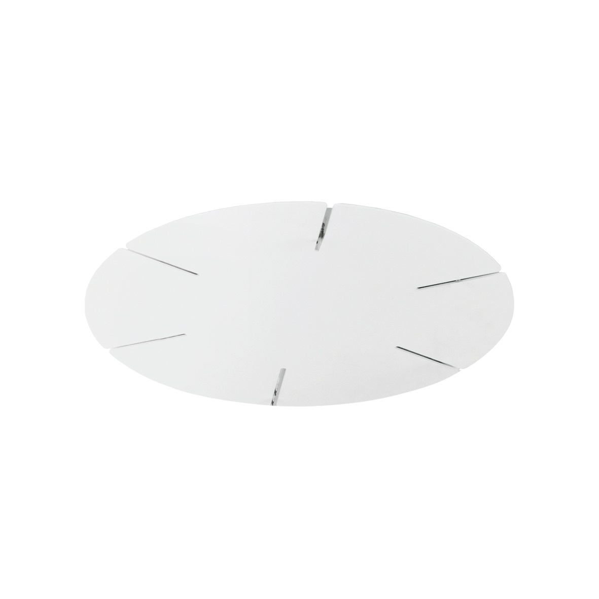 Lampada a sospensione in vetro soffiato bianco latte lucido a forma di cupola e struttura in metallo cromato. Disponibile in due dimensioni, la versione piccola viene proposta anche in cadute multiple sia con rosone (a tre e sei feritoie) che con kit decentramento (a tre e cinque elementi). Attacco E27 che consente di montare lampadina LED.