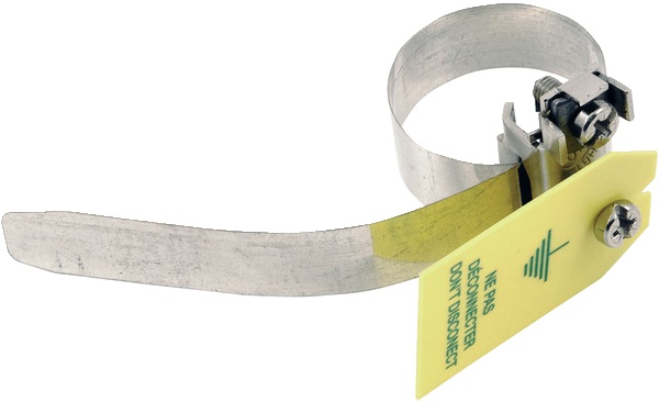 Fascetta di messa a terra in acciaio inox, ideale per garantire sicurezza e affidabilità negli impianti elettrici.