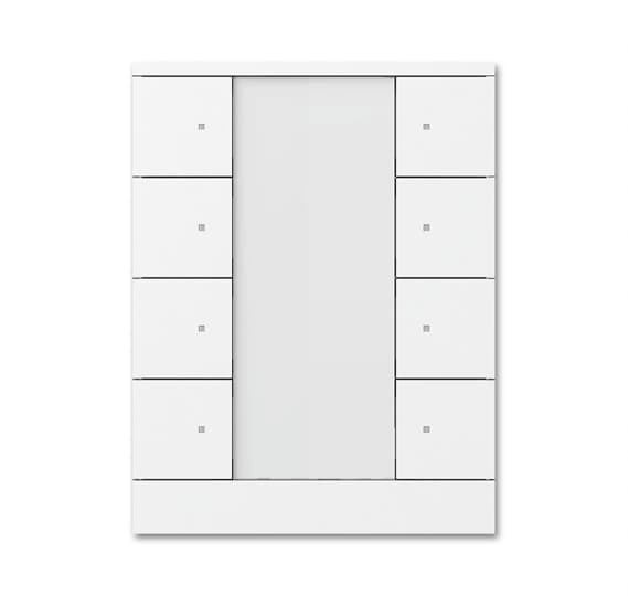 With integrated KNX bus coupler. With labelling field. Support of KNX functions through innovative colour concept (yellow=lighting, blue=blind, orange=RTC, magenta=scene and white=neutral/no function assigned) or standard illumination red/green. Push switch function: switching / dimming / blind / sending values / scenes etc. With integrated temperature sensor. Number of bus subscribers: 1