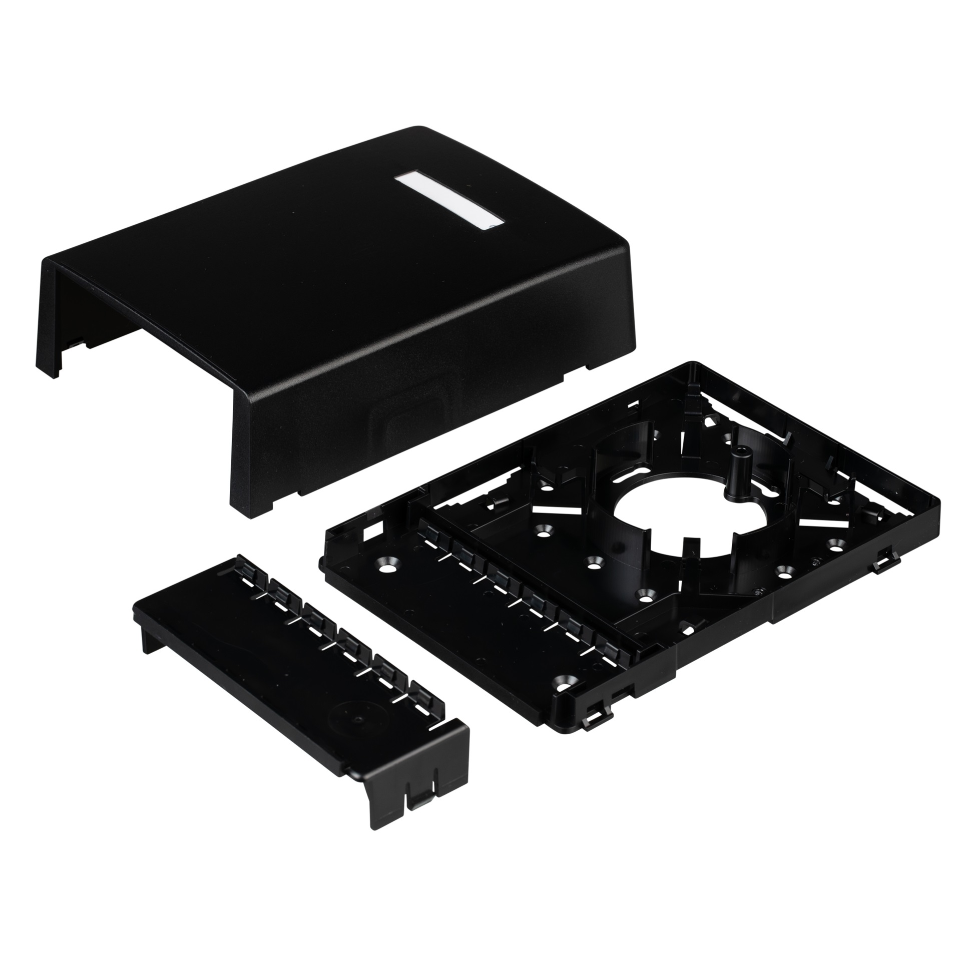 The Mini-Com® Multimedia Surface Mount Box accepts twelve Mini-Com Modules. A built-in fiber spool in the base protects and secures cable slack in place. The box offers a variety of mounting options using adhesive tape or screws. The box includes a bridge, a label pocket for easy identification and is black.
