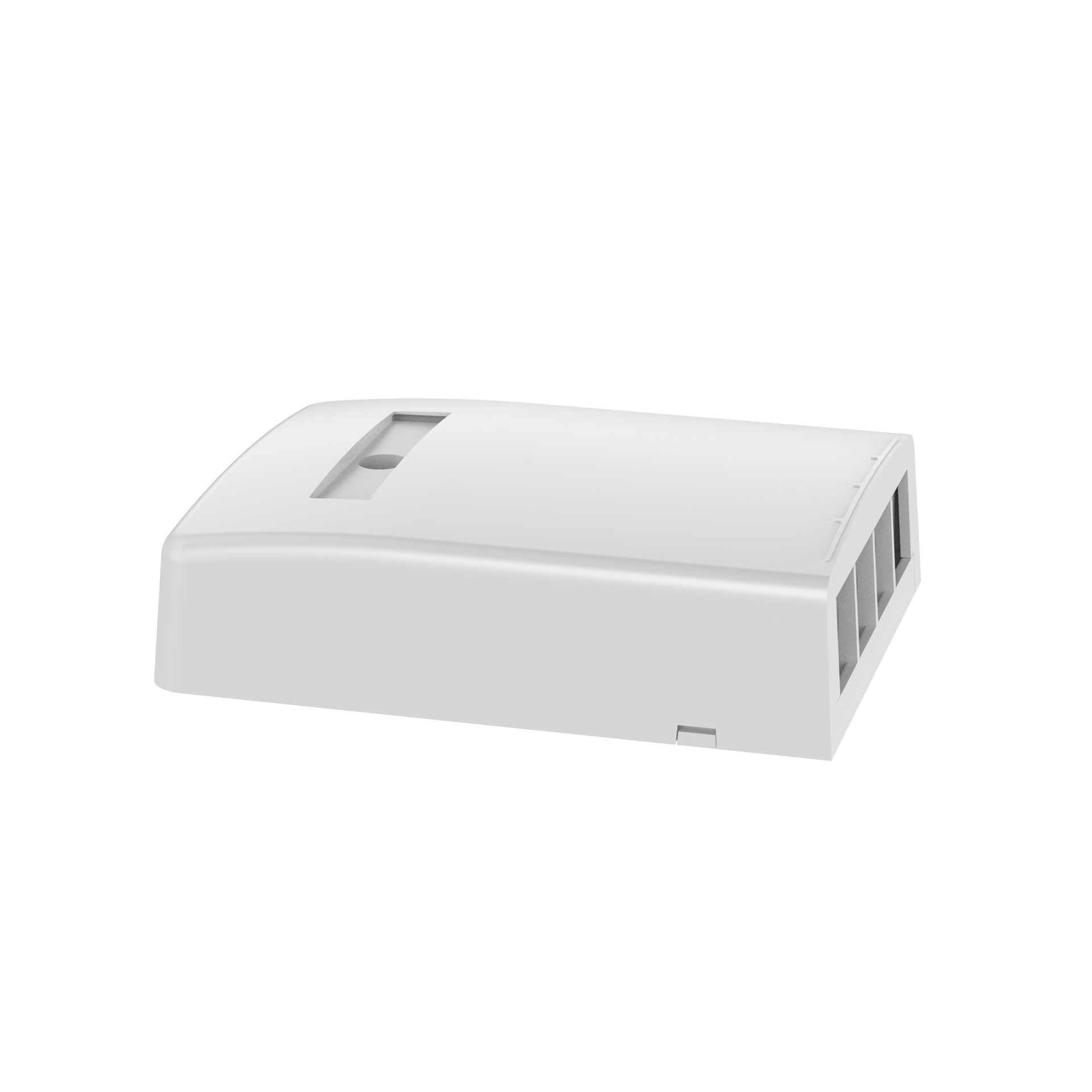 The NetKey® Surface Mount Box accepts four keystone modules. The box offers a variety of mounting options using adhesive tape, screws, or optional magnet. The box can be identified with an adhesive label and is arctic white.