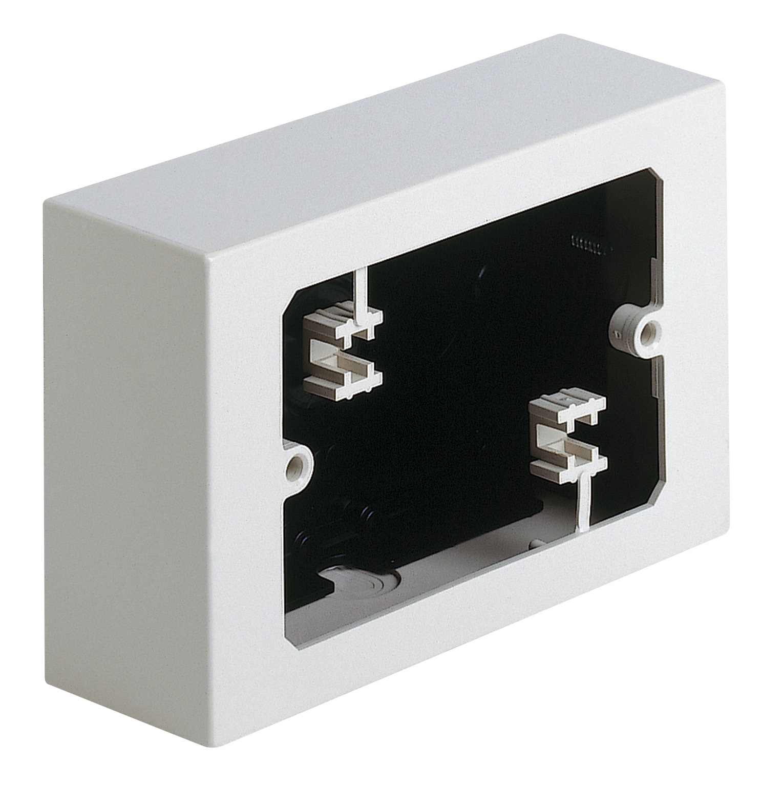 Scatola da parete o da tavolo 3 moduli, con base, profondità 40 mm, per installazione di apparecchi 8000 e Linea con i relativi supporti e placche o placche autoportanti, avorio. Non adatta all'installazione degli apparecchi: 08065..., 08081..., 08341, 08342, 08440, 08441, 08443, 08445, 08446, 08448, 08450, 08470, 08480, 08481, 10064..., 10065..., 10081...