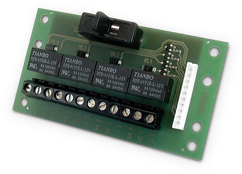 Scheda 4 uscite relè 3 A@24 V, 12 Vcc; compatibile centrali CEM, FLEXENERGY, ETR, ETREX, GENIO, RIVER.