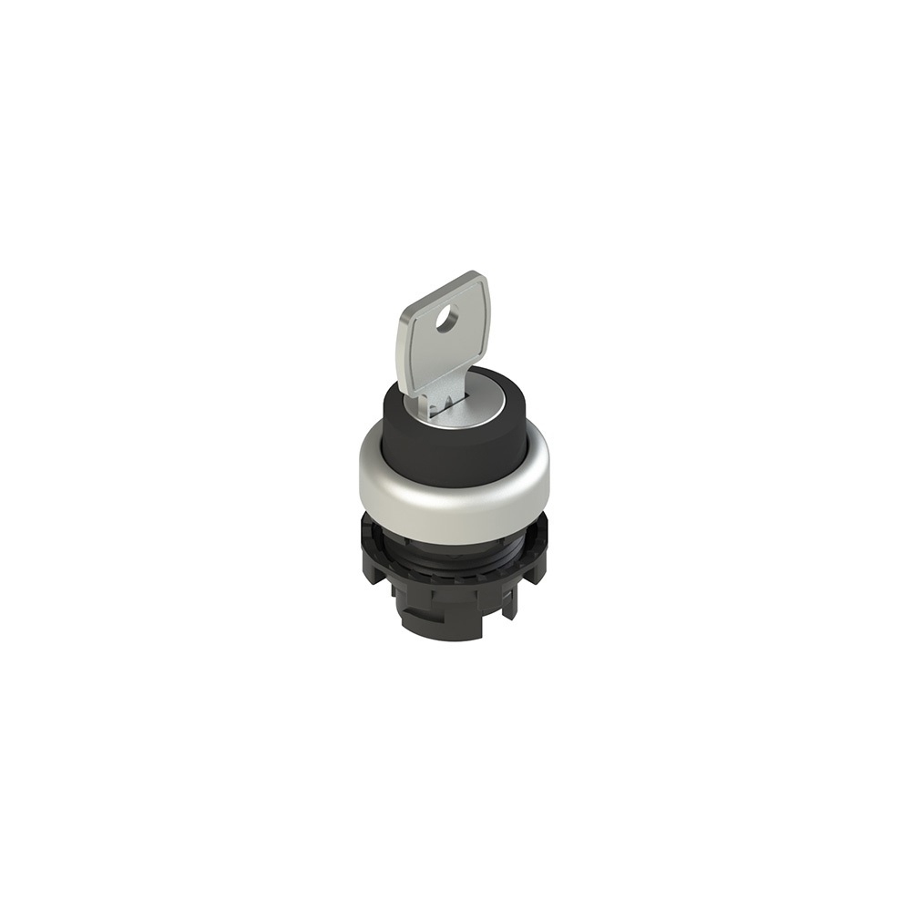 Selettore a chiave a 2 posizioni nero senza marcatura, Grado di protezione: IP67 secondo EN 60529 e IP69K secondo ISO 20653, Funzione: 2 posizioni, Colore: Nero, Ghiera: Cromo satinato.