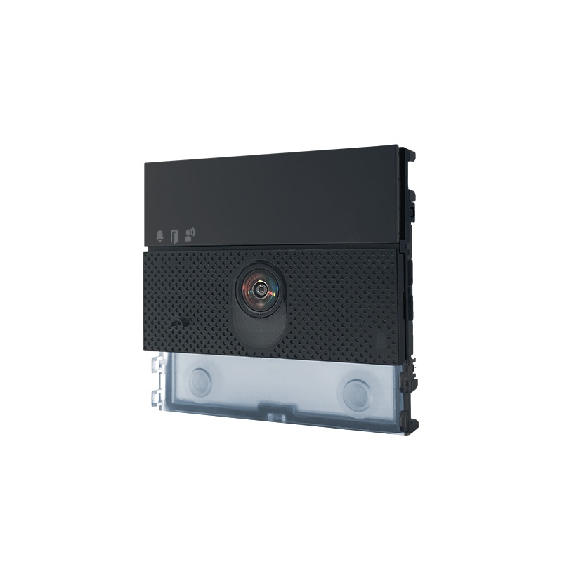 24Modulo audio/video per pulsantiera Ultra, colore nero RAL9005, sistema IP (ViP). Sensore crepuscolare per lo spegnimento automatico della retroilluminazione dei cartellini portanome durante le ore diurne. Microfono digitale omnidirezionale e doppio altoparlante per un audio ad alta fedelt?. Telecamera a colori grandangolare (campo visivo: 160? orizzontale, 90? verticale) Segnalazioni audio/visive di ausilio per i diversamente abili attivabili tramite programmazione. Predisposto per 2 pulsanti di chiamata. Da completare con tappo, pulsante singolo o pulsante doppio realizzati in plastica professionale con trattamento anti-ingiallimento e anti-opacizzazione oppure in alluminio. Regolazioni e programmazioni senza la rimozione del modulo. ULTRA, la nuova pulsantiera tecnologicamente pi? evoluta con la massima semplicit? di installazione. Disponibile nelle varianti da incasso (sporgenza dalla parete di 10 mm) o da parete (sporgenza dalla parete di soli 35 mm). Dimensioni (L x H x P): 100 x 90 x 35mm.