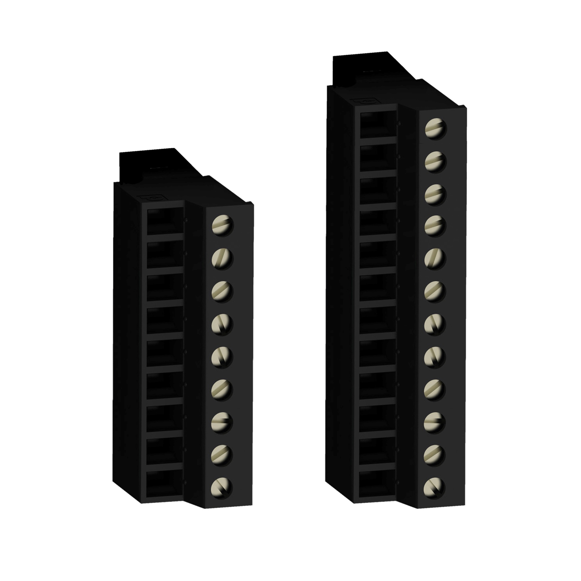 Set di connettori per M221C - IO. Il set di connettori è proposto come parte di ricambio disponibile per i controllori logici Modicon M221. Viene utilizzato per collegare gli ingressi/uscite dei controllori logici Modicon M221 ed è composto da 8 connettori rimovibili con morsetti a vite utilizzati per equipaggiare un controllore logico Modicon M221. Il prodotto è certificato CE, IACS e10, CSA, RCM, LR, ABS, DNV-GL, EAC e CULus. È conforme alle norme EN/IEC 61010-2-201, EN/IEC 61131-2 e EN/IEC 60664-1.