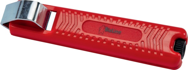 Coltello spellacavi senza lama a gancio, sezione cavo Ø 8-28 mm². Sguaina per lungo ed in modo circolare con lama auto-orientabile. Spessore della sguaina regolabile. Lama auto-orientabile di ricambio inclusa nel corpo dell'attrezzo.