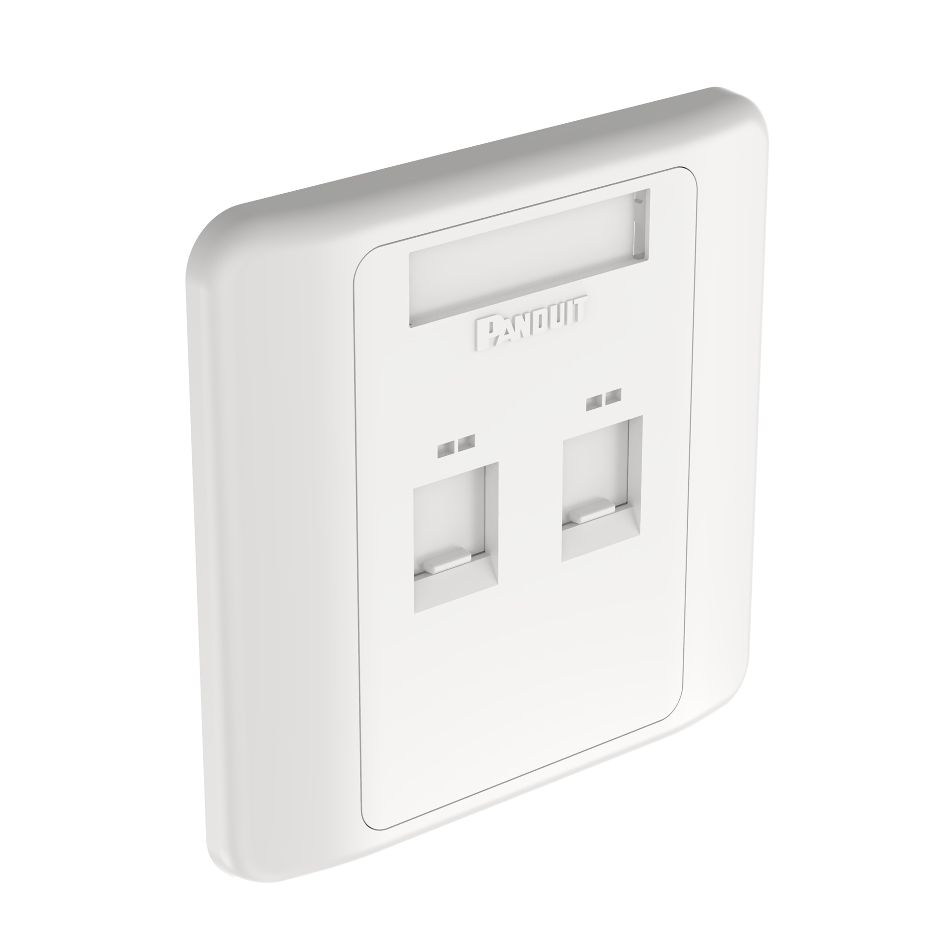 The Mini-Com® 86mm x 86mm Faceplate accepts two Mini-Com Modules. The faceplate is flat and shuttered to protect modules from dust and debris. A two-piece design conceals the two M4.0-0.7x25mm panhead mounting screws. The faceplate includes a label pocket and icon slots for easy identification and is arctic white.