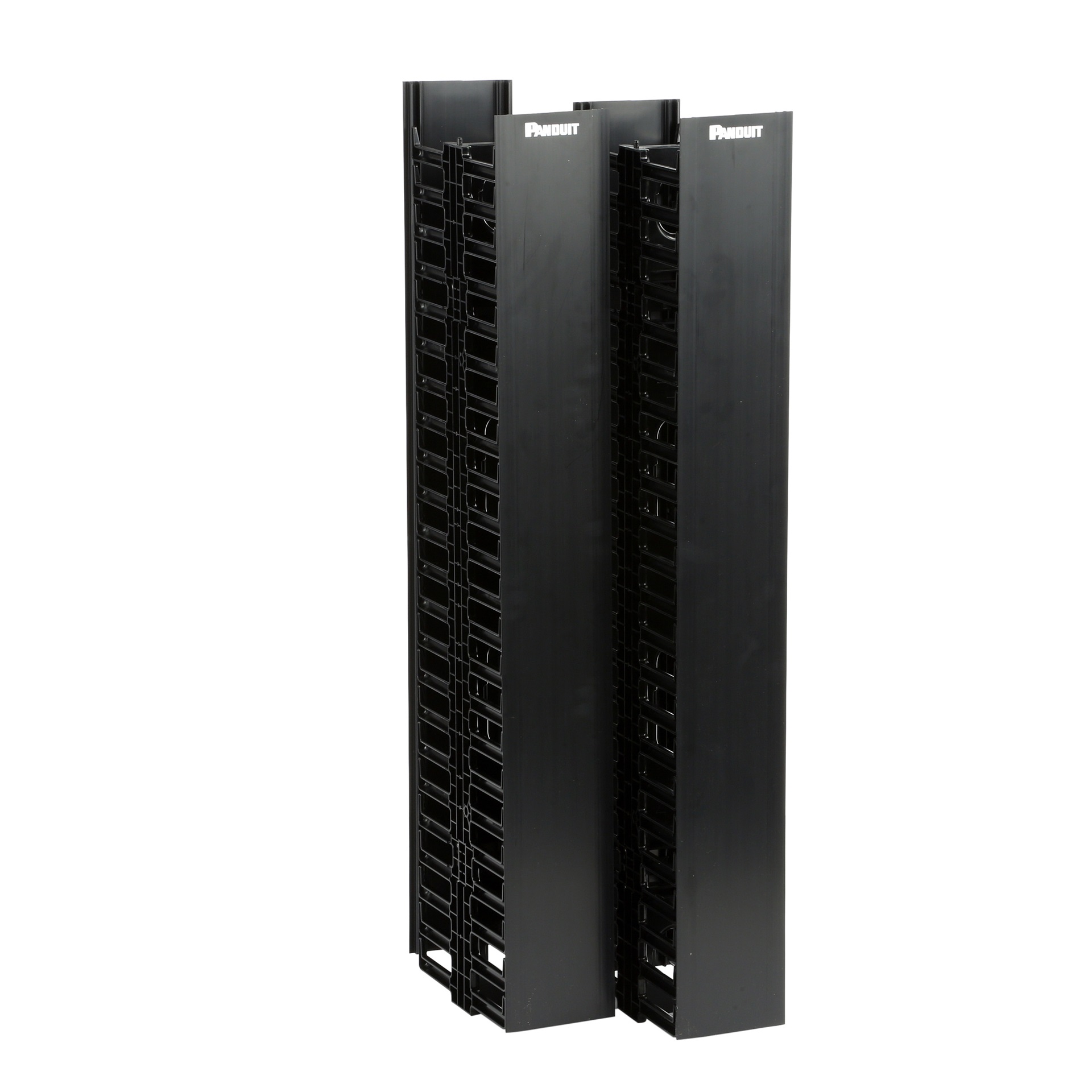 The NetRunner™ Vertical Cable Manager is a dual-sided cable manager that provides a cost-effective solution to organize, manage, and protect network cabling in telecommunication rooms and data centers. Cable management fingers simplify cable routing during installation and maintenance. The bend radius control helps protect cables from kinks and snags, ensuring system performance and reliability. The manager is 45 RU, 5 inches wide x 12 inches deep, includes dual-hinging covers, and is black.