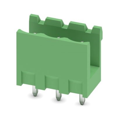 Presa base per circuiti stampati, sezione nominale: 2,5 mm², colore: verde, corrente nominale: 12 A, tensione di dimensionamento (III/2): 320 V, superficie contatti: Sn, tipo di connessione del contatto: Spina, numero dei potenziali: 3, numero di file: 1, numero poli: 3, numero di connessioni: 3, serie di prodotti: MSTBV 2,5/..-G, passo: 5 mm, montaggio: Saldatura a onde, layout pin: Pinning lineare, lunghezza pin [P]: 3,9 mm, numero di pin di saldatura per potenziale: 1, sistema di spine: COMBICON MSTB 2,5, Orientamento pin d'inserimento: Standard, bloccaggio: assente, tipo di fissaggio: assente, tipo di confezione: confezionato nel cartone