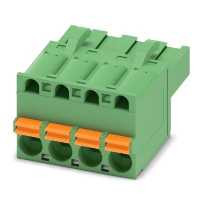 Connettore per circuiti stampati, sezione nominale: 2,5 mm², colore: verde, corrente nominale: 12 A, tensione di dimensionamento (III/2): 320 V, superficie contatti: Sn, tipo di connessione del contatto: Femmina, numero dei potenziali: 4, numero di file: 1, numero poli: 4, numero di connessioni: 4, serie di prodotti: FKCT 2,5/..-ST, passo: 5 mm, tipo di connessione: Connessione a molla Push-in, direzione di collegamento conduttore/scheda: 0 °, gancio di bloccaggio: - Gancio di bloccaggio, sistema di spine: COMBICON MSTB 2,5, bloccaggio: assente, tipo di fissaggio: assente, tipo di confezione: confezionato nel cartone
