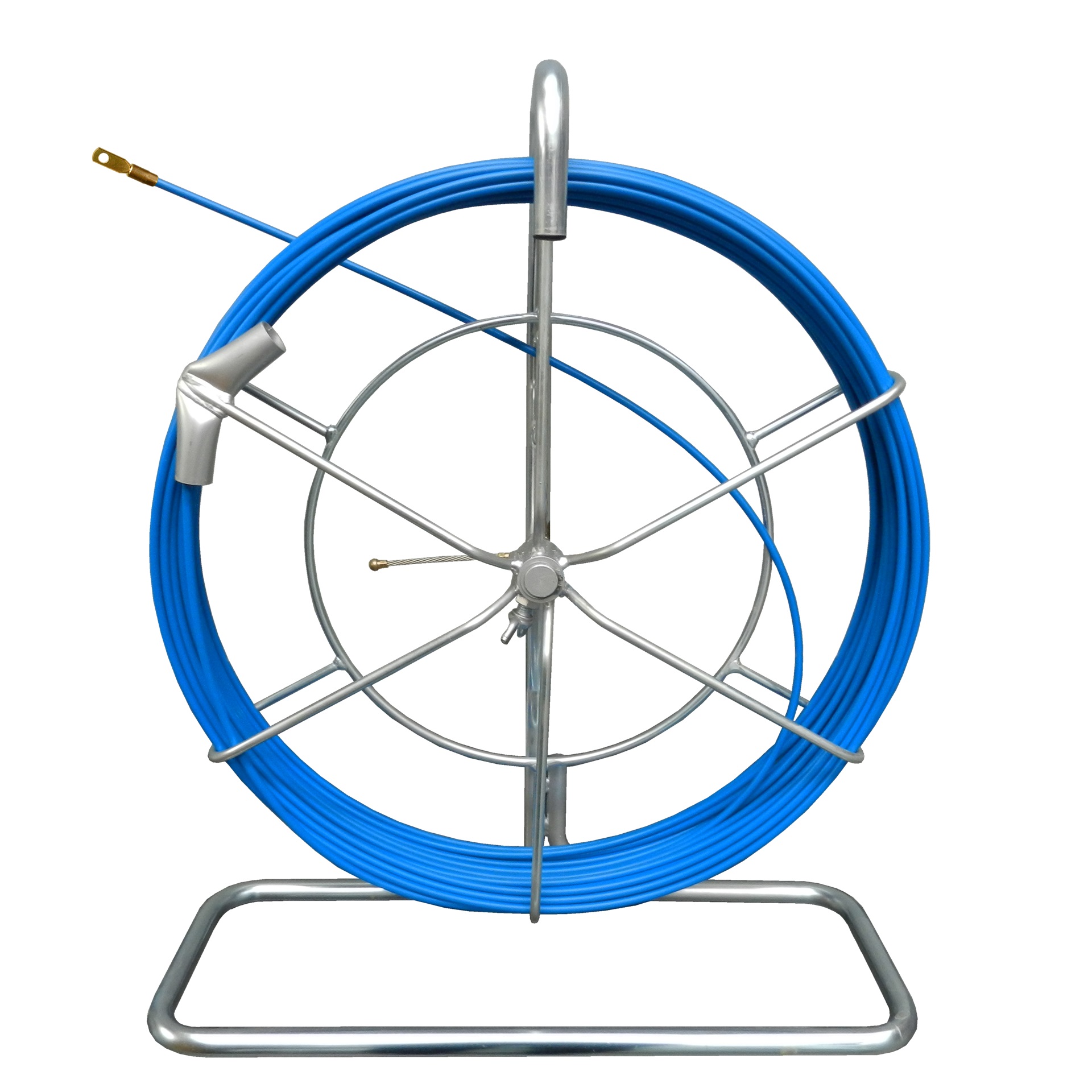 Sonda in piattina d’acciaio temprato blu 4x1,5 mm rivestita in polipropilene a Ø 6 mm da 30 m con terminali intercambiabili filettati M5 inserita nell'aspo verticale in acciaio zincato 651/03. Dotata di: testa flessibile, carrucola di scorrimento, oliva di aggancio, moschettone. Non impiegare in condotte con cavi in tensione