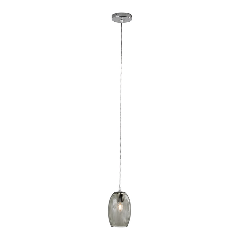 Lampada a sospensione composta da un prezioso diffusore in vetro trasparente lavorato a mano, proposto in forma squadrata o ovale nelle finiture rigadin e balloton che creano particolari effetti di lu ce sulla superficie di installazione. Disponibilein tre finiture (trasparente, fum? e blu), in vers ione singola o in cadute multiple, sia con rosonea tre e sei feritoie che con kit decentramento a tre o cinque elementi, per creare infinite composizioni di prodotto, accostando le due forme e le tre colorazioni. Attacco E14 che consente di montare lampadina a LED.