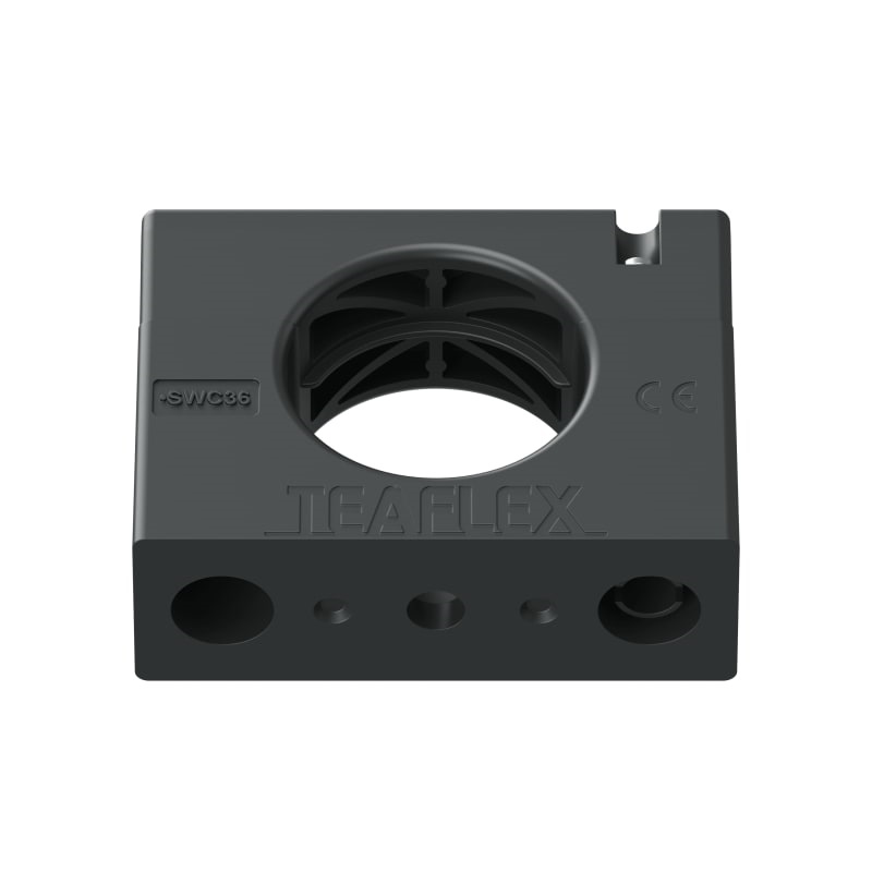 Il fissaguaina è costituito da una base di ancoraggio integrata che determina la possibilità di assicurare un solido posizionamento orientabile della guaina. Adatto per installazioni industriali ed applicazioni tecniche ad elevate prestazioni nell'industria pesante e nel settore ferroviario, in particolar modo quali terminali guaina in quadri elettrici. I vantaggi ulteriori che ne conseguono sono i seguenti: Posizionamento orientabile grazie al fissaggio a sei fori. Sicurezza totale contro torsioni e movimenti.