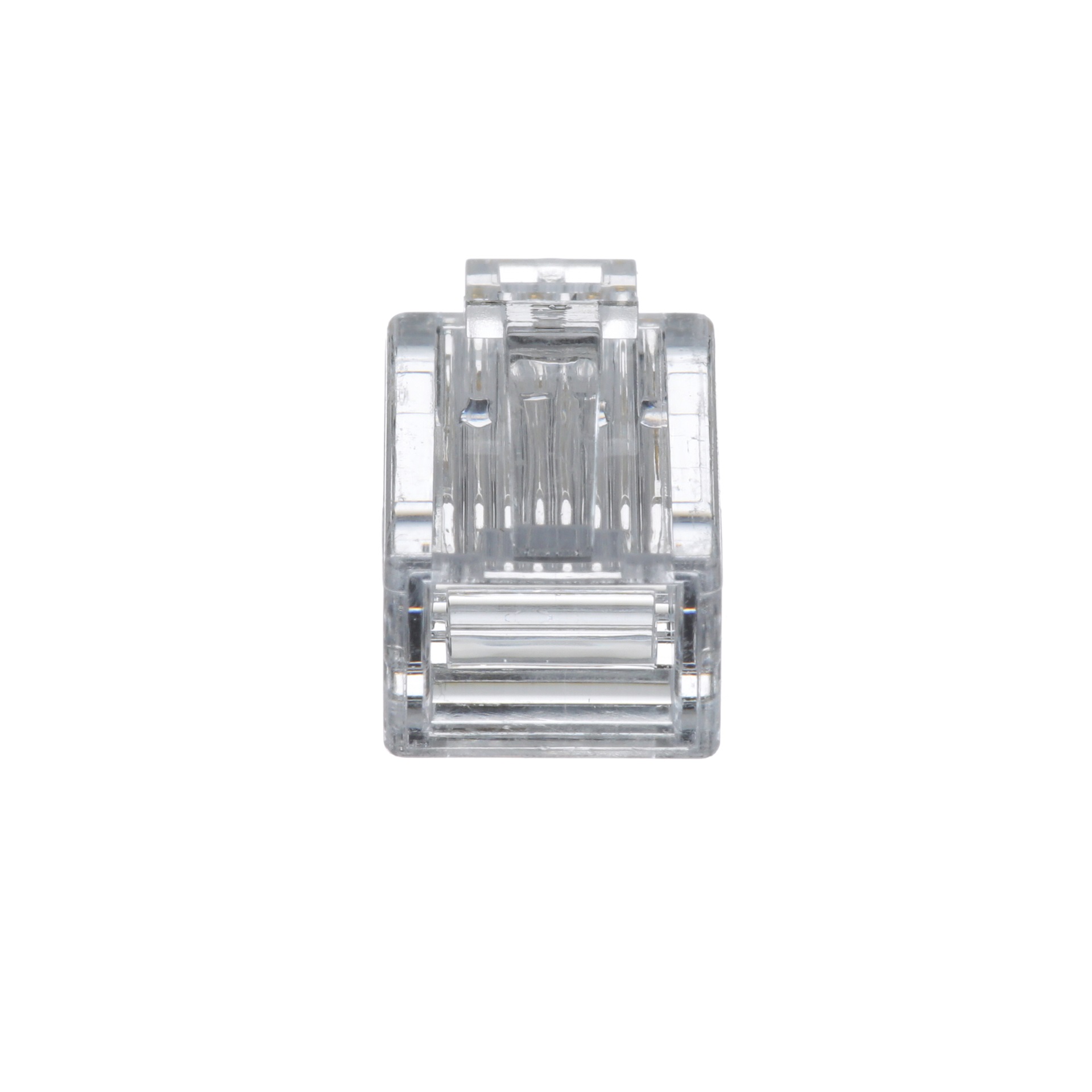 The Cat 5e modular plug terminates 4-pair, 24-26 AWG, 100 ohm, solid or stranded, unshielded twisted pair cable with maximum conductor insulation diameter of 0.040 inches (1.02mm). The modular plug has a robust construction that is rated to 2500 mating cycles. The patented tangle-free latch prevents snags and provides easy release. Simplified termination method shall require no load bar. Guide ramp shall facilitate easy conductor insertion and termination. This includes 100 per package.