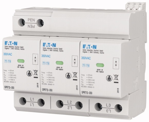 SPRT12-350/3-AX SCARICATORE FULMINE195235 EATON INDUSTRIES (ITALY) S.R.L. Classe Etim: EC001457 - Scaricatore combinato per sistemi di alimentazione