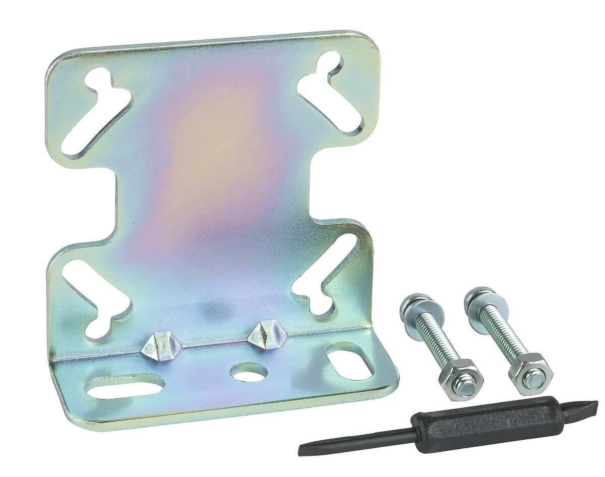 La staffa di fissaggio OsiSense di Schneider Electric è per sensori fotoelettrici Xu.