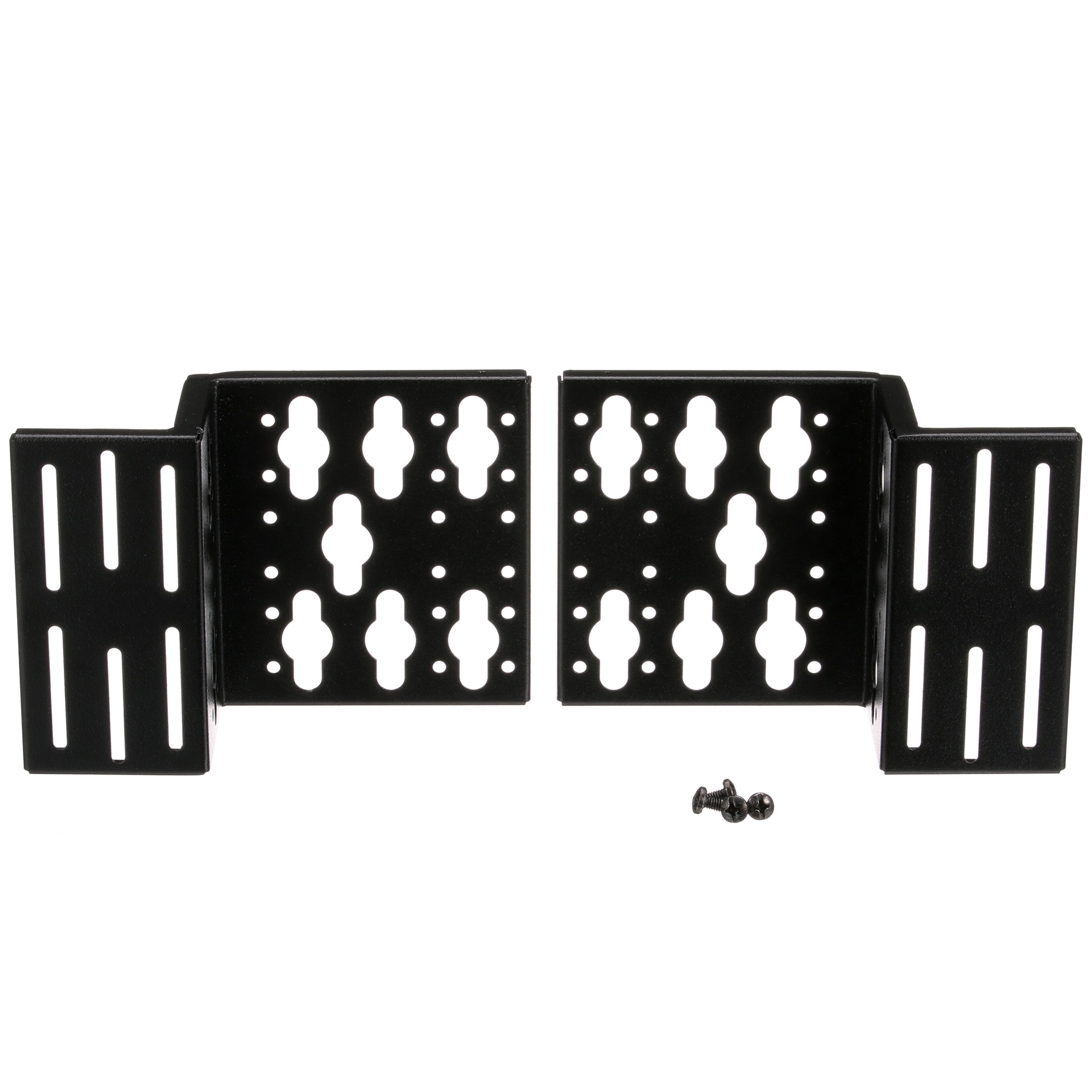 The PDU bracket kit vertically mounts power distribution units (PDUs) to the back of 4 post racks. The 4 post rack accessory is part of a complete rack and cable management system that manages, protects, and showcases your network investment. The kit includes a pair of brackets that are made of steel and are black.